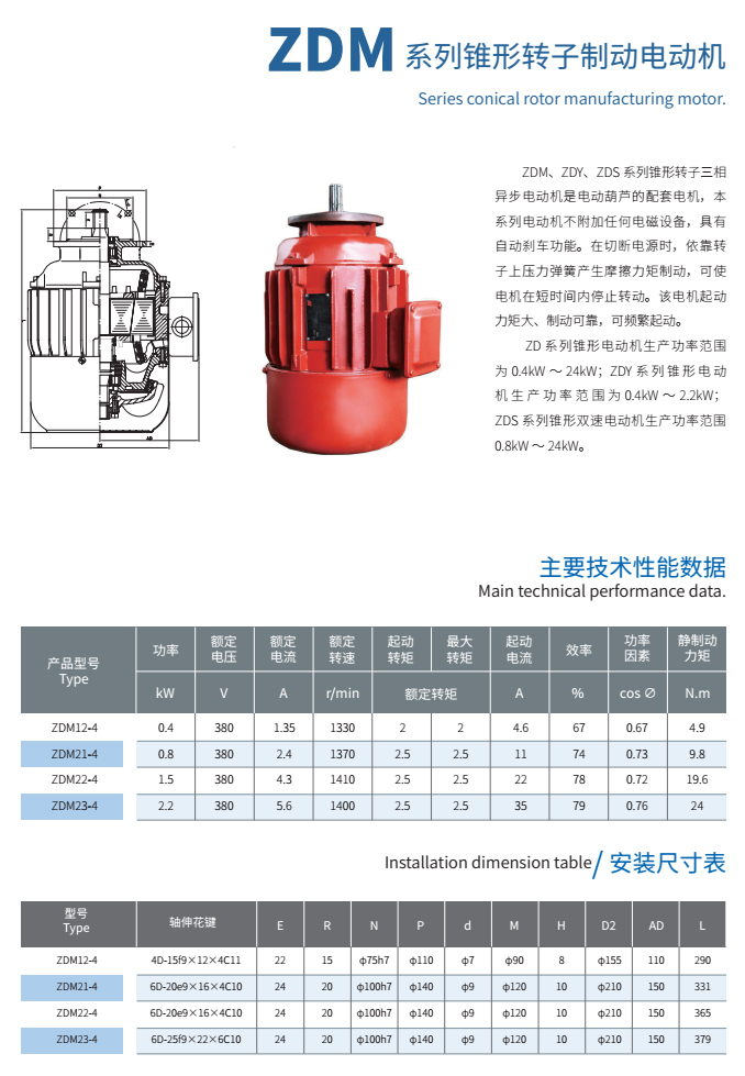 ZDM系列錐形轉(zhuǎn)子制動(dòng)電動(dòng)機(jī)
